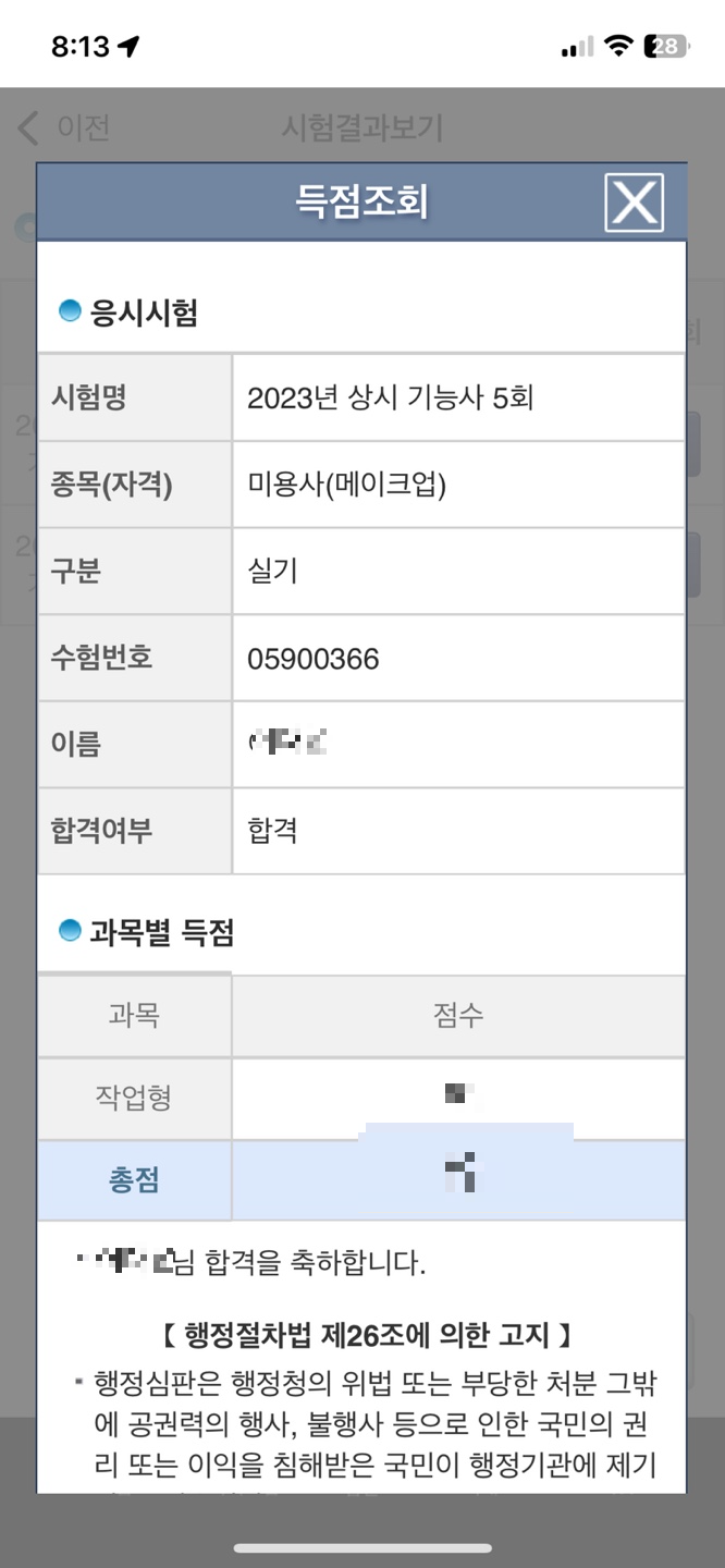 이 글을 읽으시는 시험자 분들도 다른건 여유롭게 준비하지 않으셔도 립브러쉬 정도는 하나더 준비하시는거 추천 드려요 ㅠㅠ 혹시 모르자나용.. 잘 준비하셔서 시험 꼭 잘보시고 합격하시길 기원합니다!!! 화이팅!